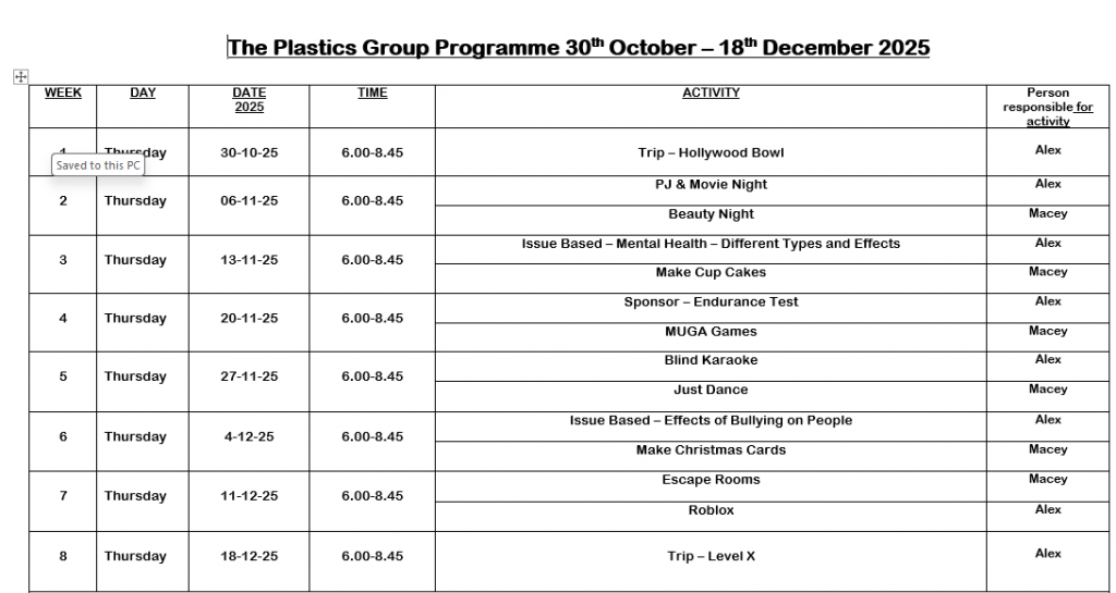 We are first year girls youth group. We love to come in on a Thursday night to cook, get fit in the gym and play games.