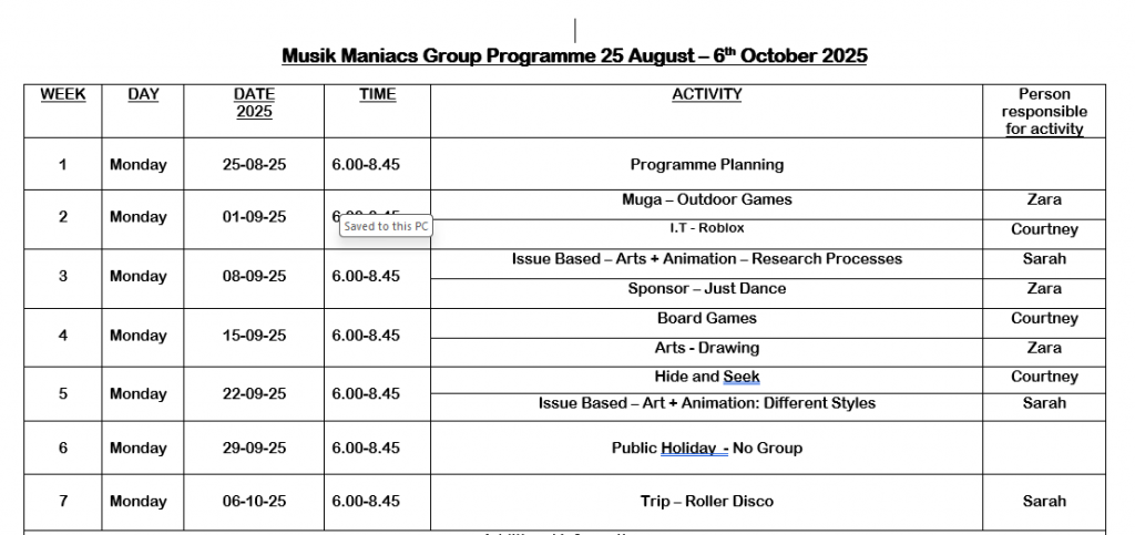 We are an all girl, second year youth group who meet in the Project on a Monday NightWe a fun loving group with high energy levels who like to do Arts and Crafts, Baking, use the Focus gym and MUGA and play lots of indoor and outdoor games which we love.