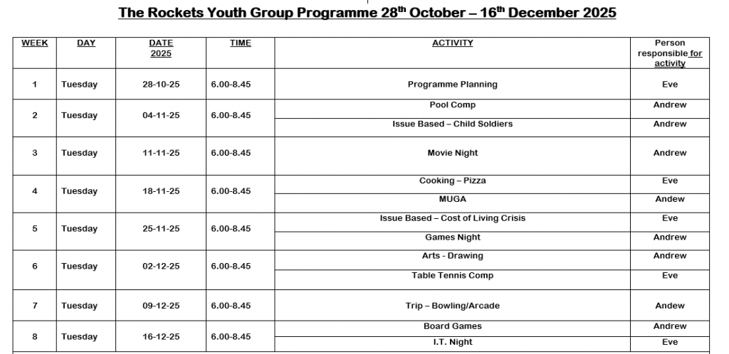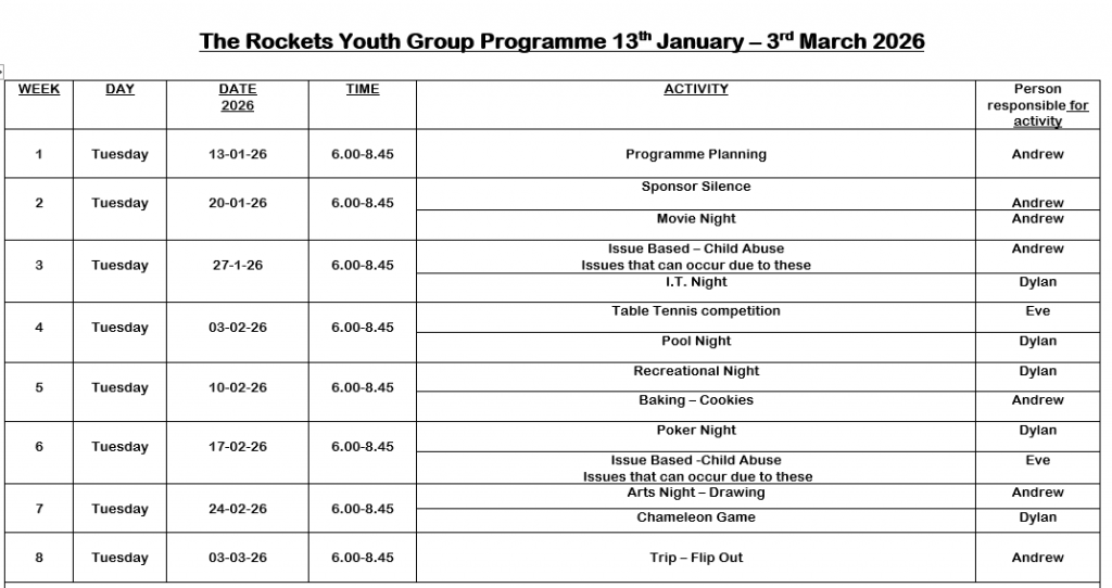 We are a group of 1st/2nd year boys who come to the Project on a Tuesday night. We like sports, movies, lego and Arts and Crafts.