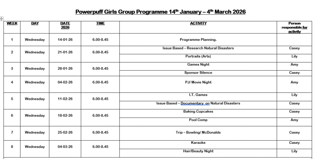 We are a group of first year girls who meet on a Wednesday Evening. We love baking, singing, dancing and arts and crafts.